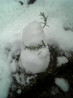 素手だったので雪を掻き分けて小石などを探す気にはなれず、隣りに植わっていたローズマリーを千切って飾るのみに留めました。