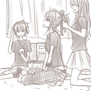女子3人がライブ行くとして、どっかに集まって準備してたら可愛いなー